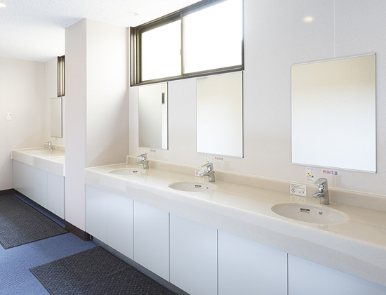 ミーティングやチーム会議に使える大広間をはじめ、コインランドリー、大浴場や共用洗面所など、合宿生活を快適に支える環境を整えています。
